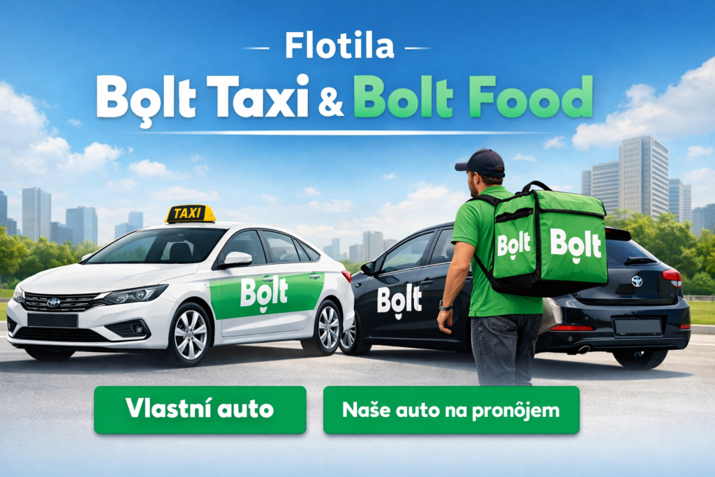 Naše vozidla jsou připravena pro služby Bolt Taxi a Bolt Food. Dbáme na spolehlivost, čistotu a komfort – ať už vozidlo využíváte k jízdám s klienty, nebo pro rozvoz objednávek.